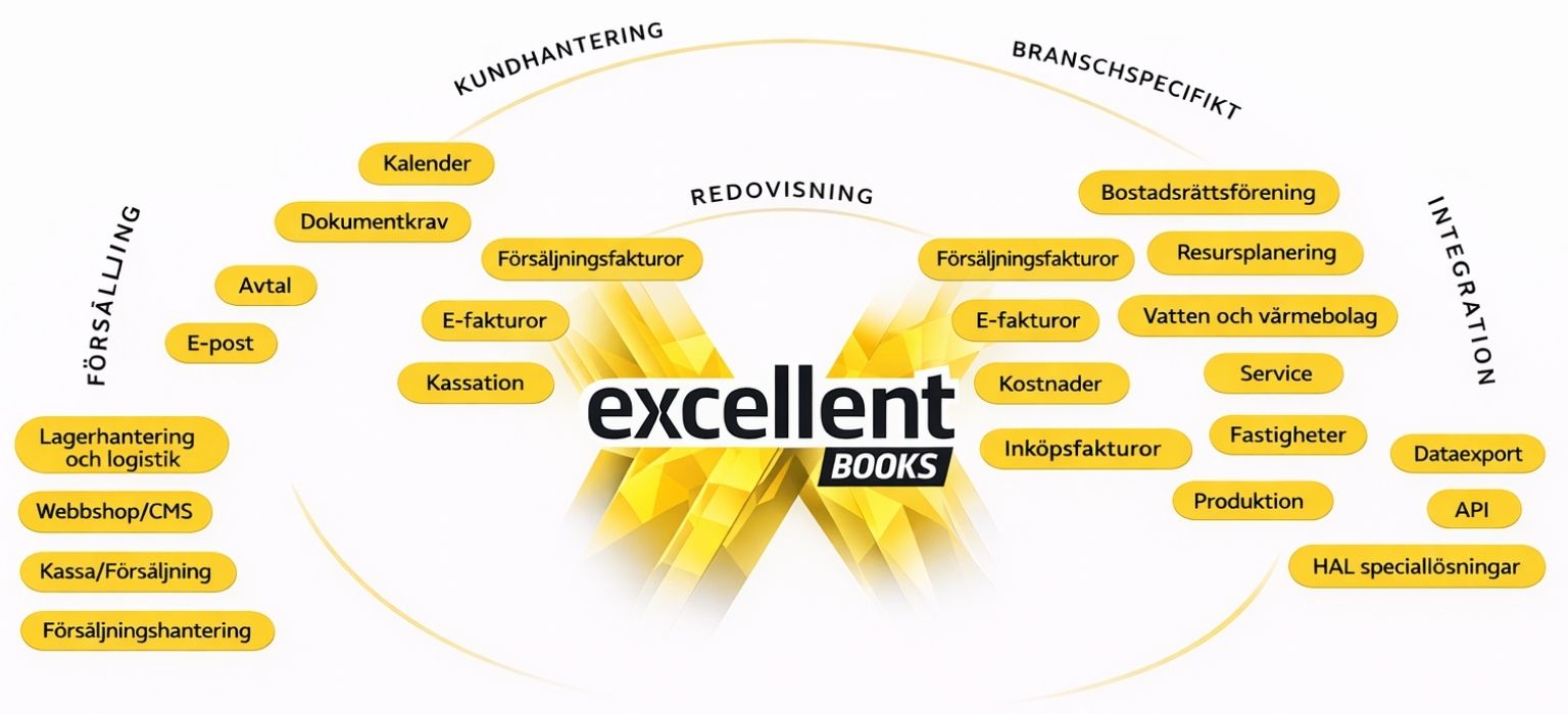 Vi breddar vårt erbjudande inom affärssystem med Excellent Books, ett modernt och modulbaserat affärssystem som idag används av över 30 000 företag i Norden och Baltikum.